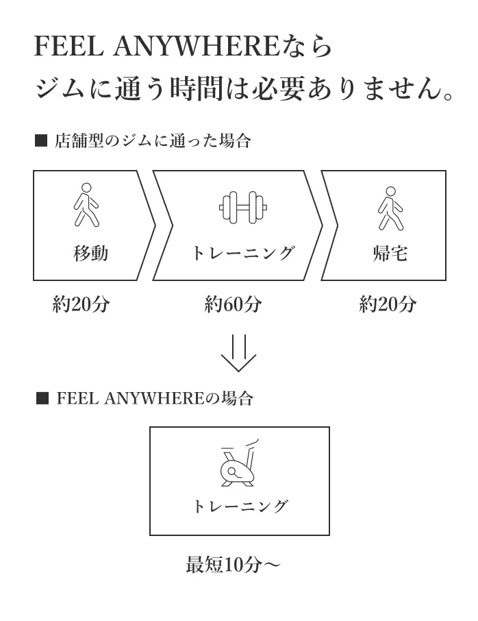 移動時間や着替えなどの準備の手間を削減できるため、時間の有効活用ができます。 また、自分自身がリラックスできる場所でレッスンを受講できるため、周囲を気にせず自分のペースで集中いただけます。
